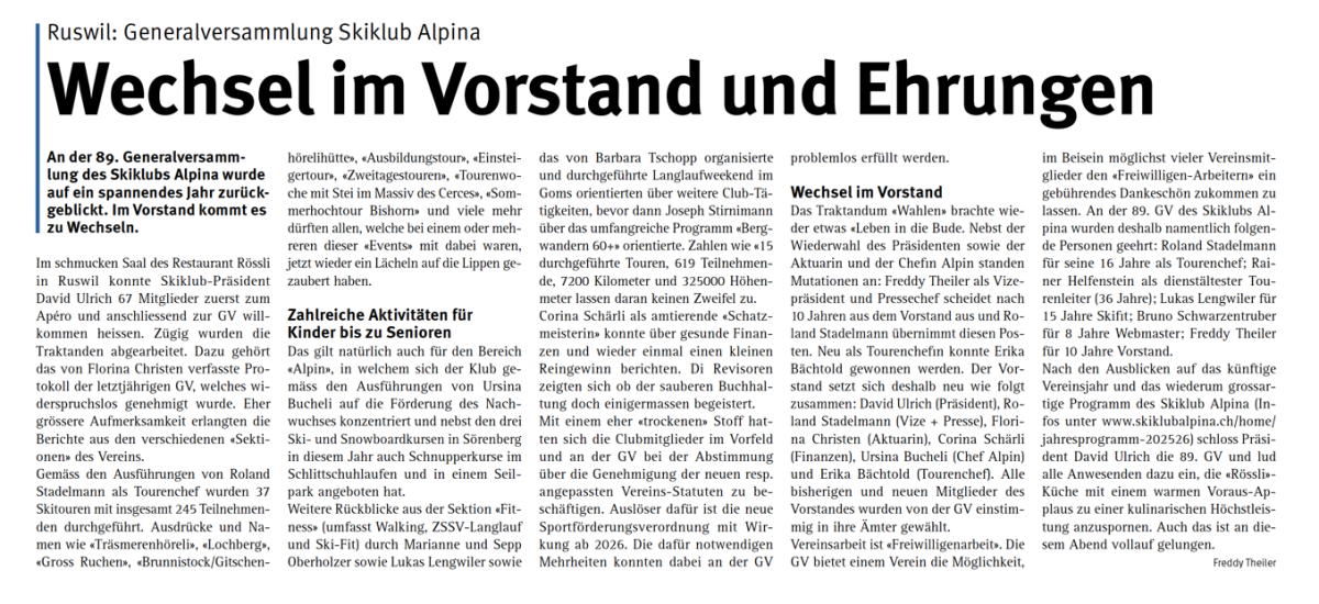 zurück zu AktuellDer Bericht der 89. Generalversammlung vom 8. November ist online.
