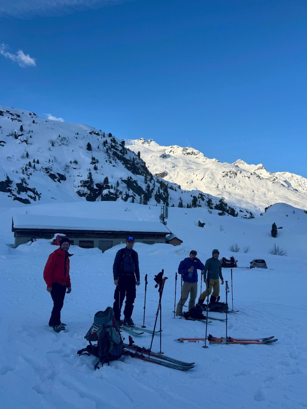 Am Ostermontag starteten wir um 05:00 Uhr in Ruswil zu viert Richtung Gadmen. In Luzern stiess noch ein weiteres Clubmitglied dazu, sodass wir komplett waren. Beim Parkplatz Feldmoos, kurz vor der Barriere, starteten wir direkt mit den Tourenski.
